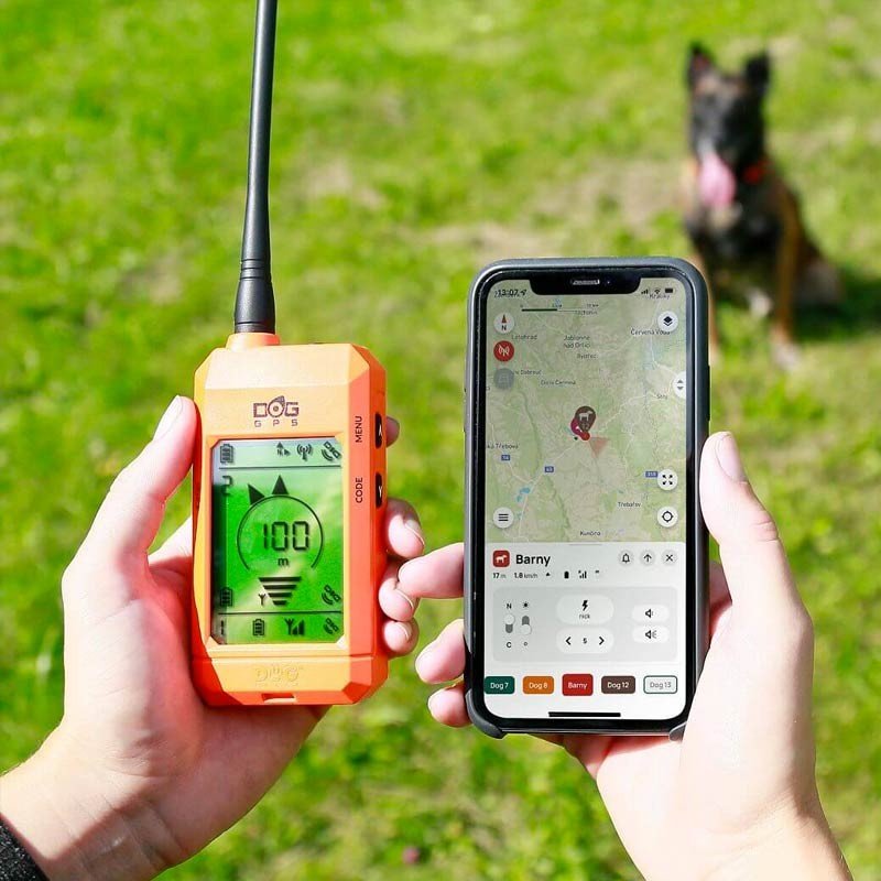 Le GPS pour chien se compose de l’émetteur situé sur le collier du chien et du récepteur (combiné) sur lequel le maître-chien suit la distance et la direction vers l’emplacement du chien.