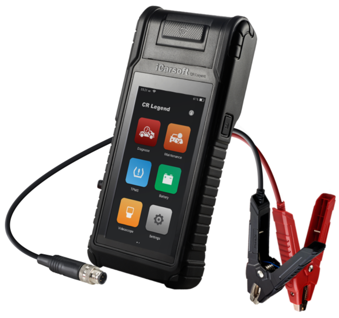 iCarsoft CR Legend est une valise de diagnostic automobile multimarques de niveau professionnel permettant le diagnostic tous systèmes, programmations, gestion des entretiens mais également un testeur de batterie et une caméra endoscopique.