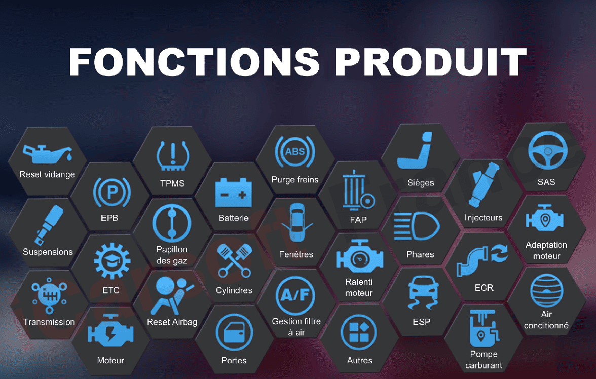Cette valise de diagnostic permet également de remettre à zéro les entretiens du véhicule, de supprimer le voyant vidange du tableau de bord mais également de réaliser d’autres opérations de maintenance. (Voir rubrique fonctionnalités détaillées)